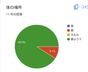 そこで、刺された場所をメンバーにアンケートを取った所11人中10人が「膝から下」と答えました。